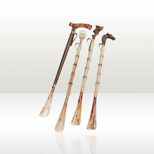 Decorative Shoehorns These shoehorns simply make it easy to put on your shoes. No more crushed heels. DECORATIVE SHOEHORNS come in 7 different ends. 55cm in length. HAND (back scratcher) KOALA HORSE CROP (riding crop handle) Metal Ends Golf Ball, Dog & Horse Head DECORATIVE SHOEHORNS are also a perfect gift!